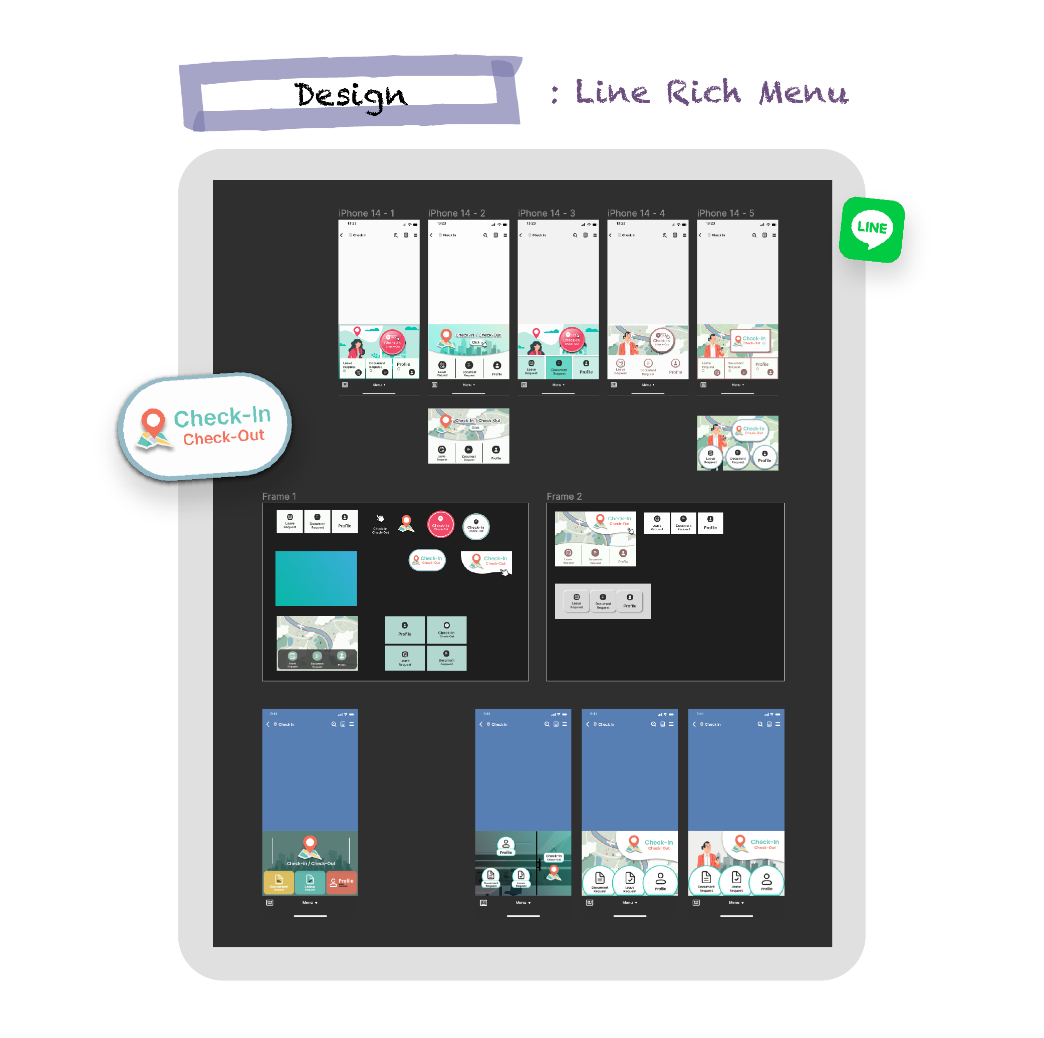 - Line Rich Menu Design : งานแรกที่ได้รับมอบหมายคือให้ออกแบบ Rich Menu ให้ออกมาใช้งานง่าย สวยงาม และดูสบายตา