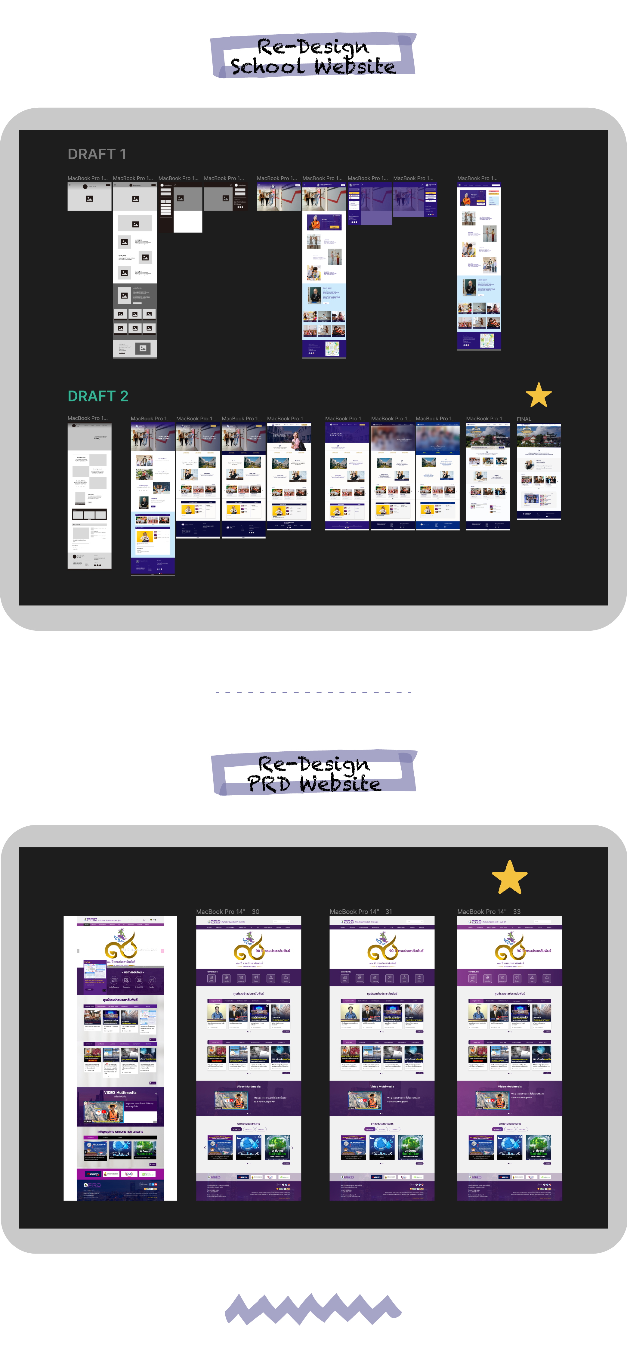 - Re-Design : ได้รับมอบหมายให้ Re-Design เว็บโรงเรียนและเว็บข่าวสาร(PRD) ปรับ Ui ให้ผู้ใช้งานสามารถใช้งานได้สะดวก และได้เรียนรู้ว่าในการ design จะมีการใส่ Guidelines, Grid และขนาดของ Frame ว่าต้องใช้ขนาดเท่าไรจึงจะเหมาะสม และต้องไม่ลืม Style Guide เพื่อให้ Programmer เข้าใจไปในทิศทางเดียวกัน